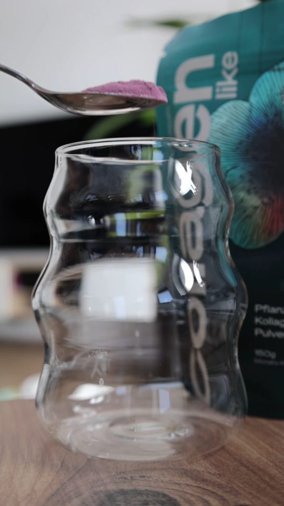 Hinweis: Rührst du CollagenLike in klarem Wasser ein, nimmt es eine leichte Lila-Färbung an.